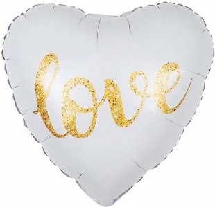 —Шар (18''/46 см) Сердце, Любовь, Белый/Золото, 1 шт.