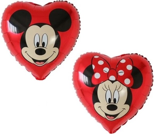 Шар (18''/46 см) Сердце, Микки Маус и Минни Маус, Красный, 1 шт.Falali