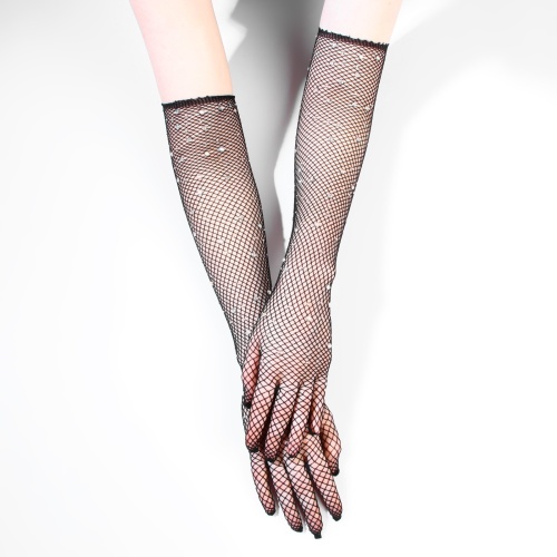 —Карнавальные перчатки, цвет черный со стразами, длинные