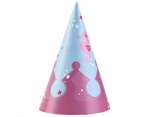 Карнавальный головной убор. Веселые бумажные колпачки на резинках с дизайном Русалочка. В наборе 8 штук.