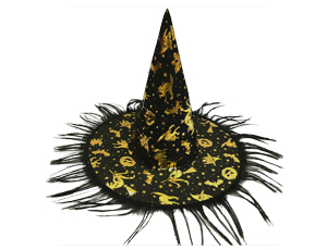 Шляпа ведьмы черн/золот с бахромой 36смG