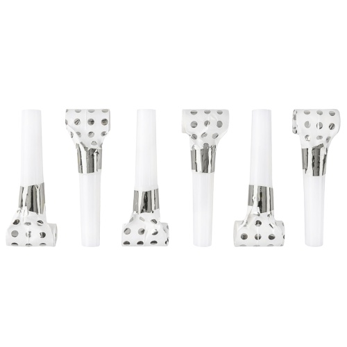 Карнавальные язычки гудки, Горошек, Белый/Серебро, металлик, 6 см, 6 шт.