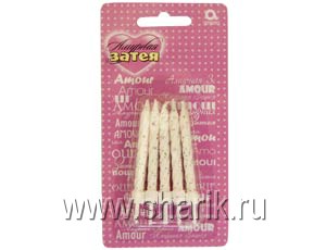 Декоративное украшение праздничного стола. Белые свечи блеск отличное решение для декорирования торта, десерта ко Дню рождения, Юбилею, Новому году или свадьбе. Стеарин, оригинальный дизайн. Высота свечей 6см, в упаковке 10 штук с подставками.
