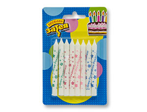 Украшение стола, торта. Свечки с рисунком С Днем Рождения Звезды. Отличное решение для декорирования стола ко Дню Рождения. Стеарин, оригинальный дизайн. Высота свечей 8см. 8 штук в упаковке.