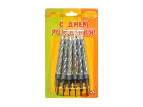 Свечи Серебряные с держателями 12шт 6см