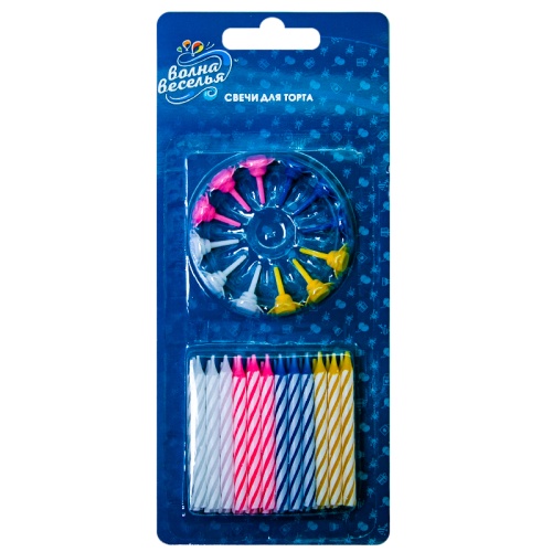 —Свечи праздничные 2-х цветные 6 см с держателями 24/12 шт