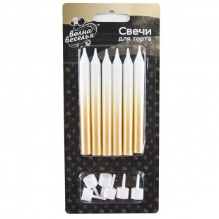 —Свечи Сверкающие искры, Белый/Золото, Градиент, с блестками, 0,77*8 см, 6 шт. с держат.