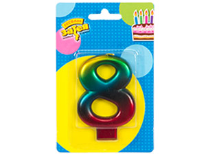 —Свеча -цифра "8" Радуга металлик 8см/V
