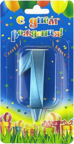 Свеча Цифра, 1 Грани, Синяя бирюза, 7 см, 1 шт.