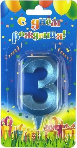 —Свеча Цифра, 3 Грани, Синяя бирюза, 7 см, 1 шт.