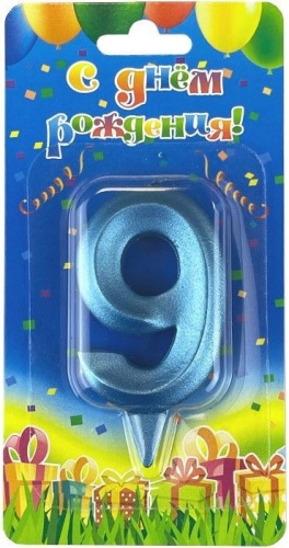 —Свеча Цифра, 9 Грани, Синяя бирюза, 7 см, 1 шт.