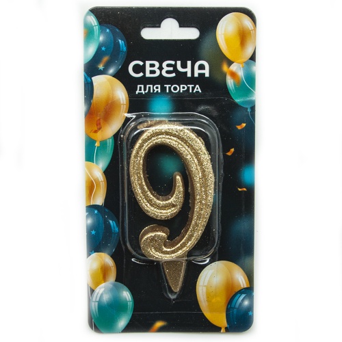—Свеча Цифра, 9 Грация, Золото, с блестками, 7 см, 1 шт.