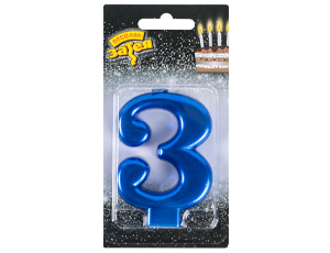 —Свеча -цифра "3" Синяя 8см/G