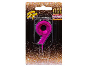 —Свеча -цифра "9" Диамант Маджента 4,5см/V