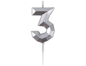 Свеча -цифра "3" Диамант Серебро 4,5см/V