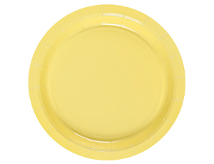 Бумажная тарелка желтого цвета размером 23см. Используется совместно с другими элементами коллекции по дизайну (стаканы, приборы, скатерти и т.п.).