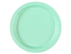 Бумажная тарелка мятного цвета размером 23см. Используется совместно с другими элементами коллекции по дизайну (стаканы, приборы, скатерти и т.п.).