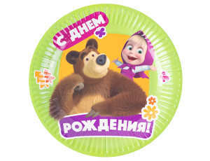 Тарелка бум С ДР Маша и Медведь 23см 6шт